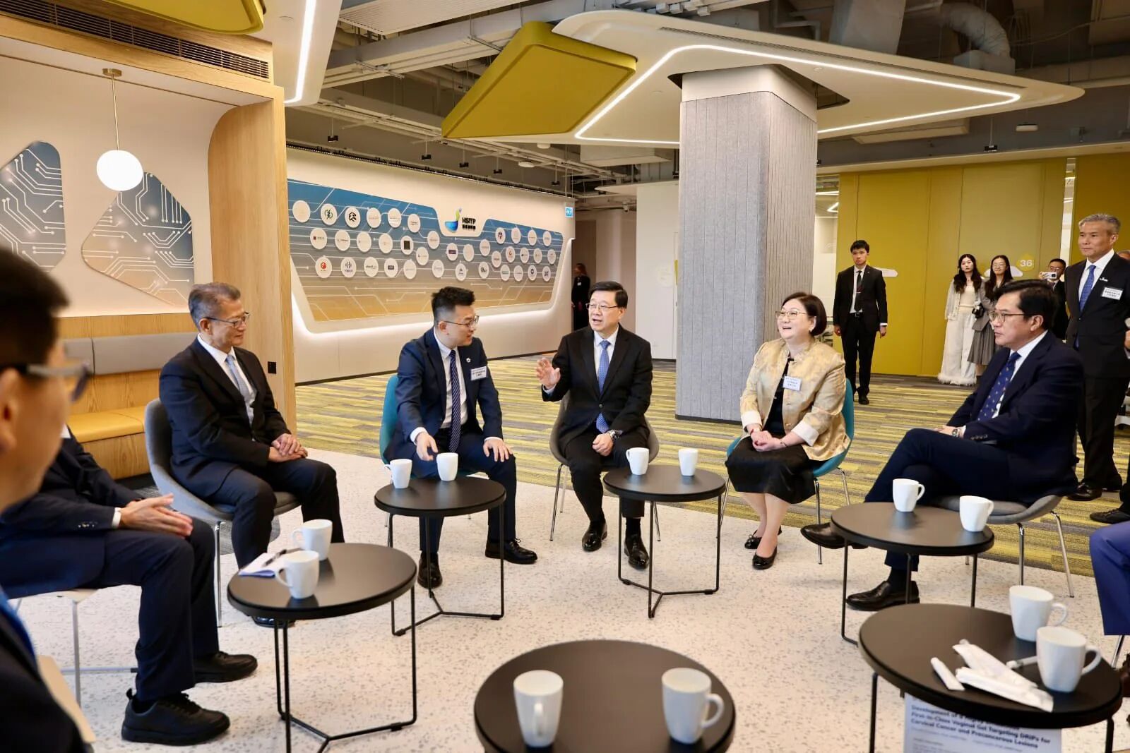 创科园香港园区至今已有超过60家本地和海内外不同创科领域的企业和机构与园区签署租约并陆续进驻,李家超今日亦与多间已经落户或有意进驻园区、来自海内外的企业代表交流,当中包括专注于医疗器材与保健产品研发的德国公司,以及制造手术器械的瑞士公司代表。他们来自创科范畴的各行各业,涵盖创科产业链的不同阶段,既有承租园区大楼多个楼层的大户,亦有租用跃进空间的初创企业,也有计划发展选定地块的科技企业