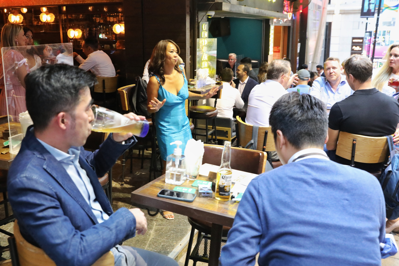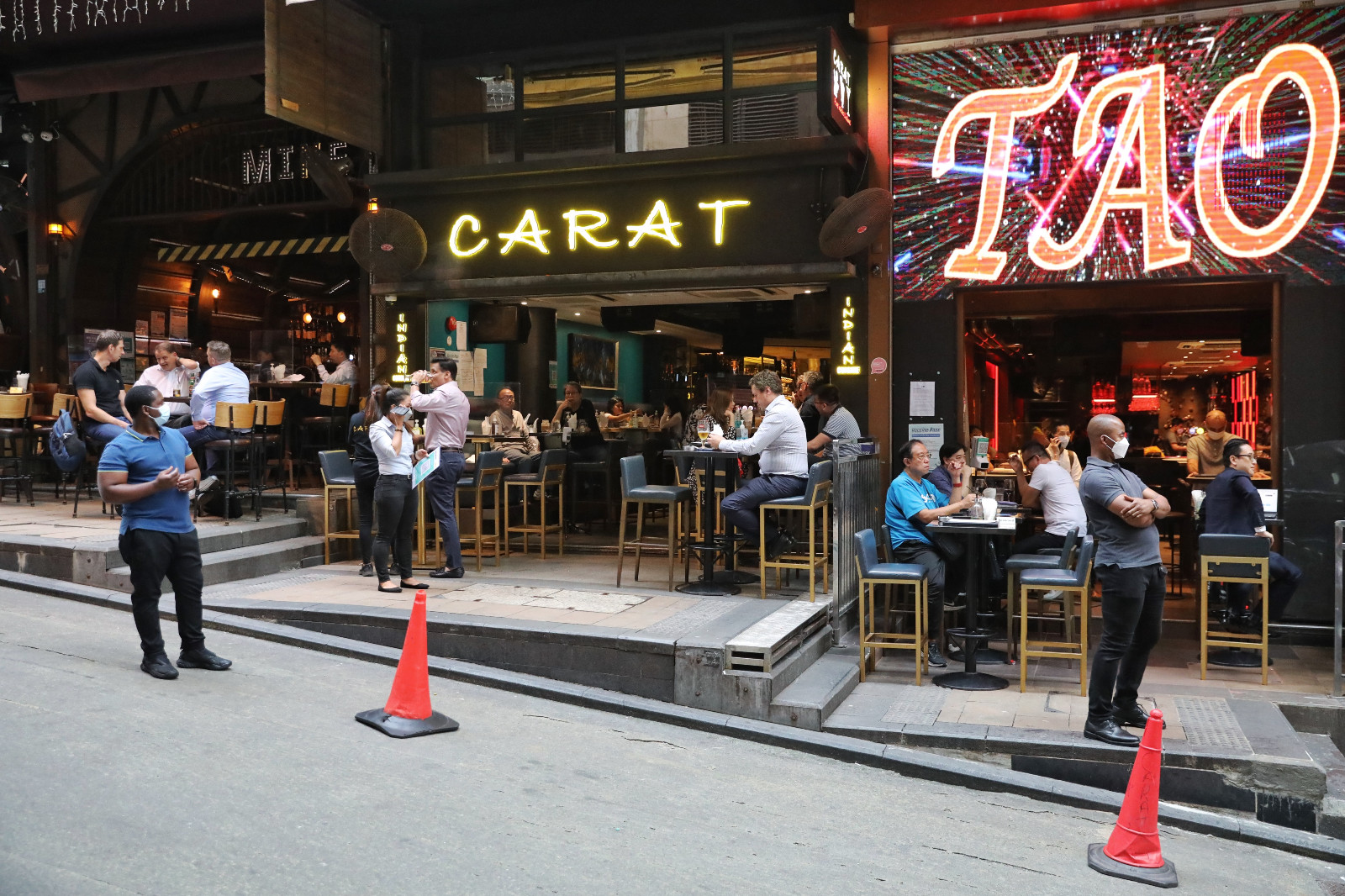 19日傍晚,中环兰桂坊人流逐渐增多,由于不少市民已经很久没有到酒吧聚会,反应比预期热烈。